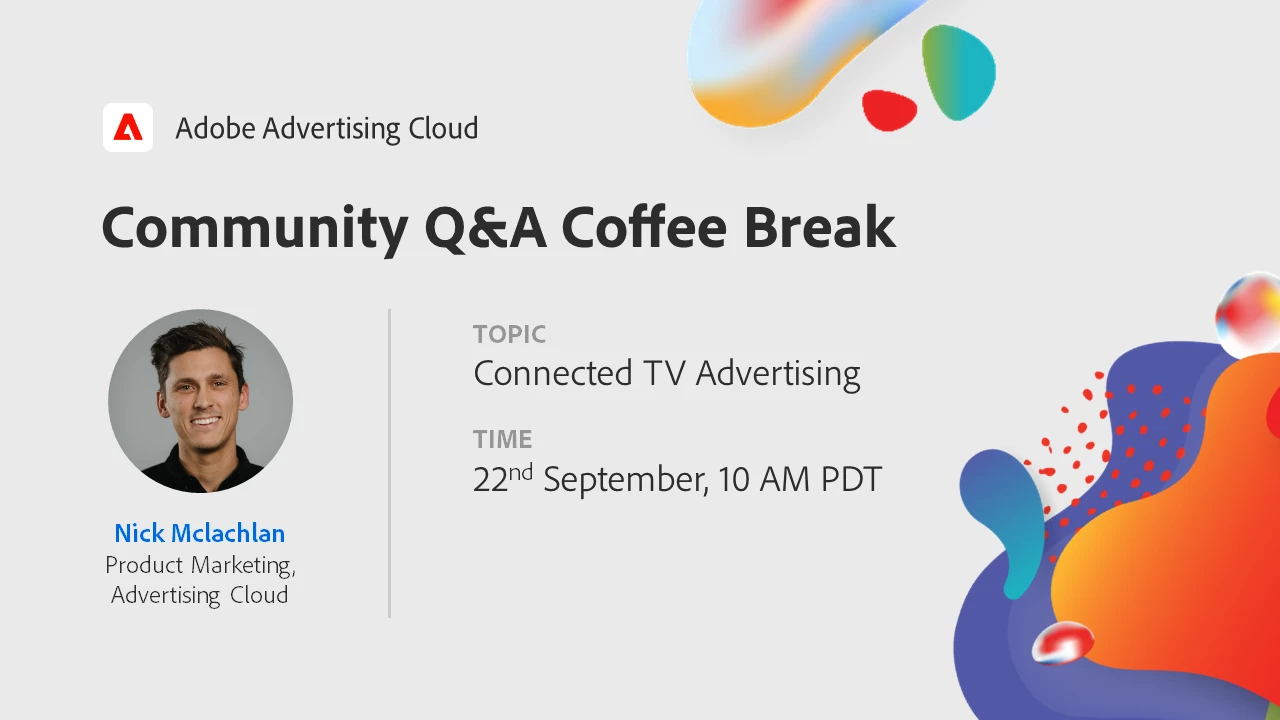 We'll be joined by Nick Mclachlan aka @nickmclachlan , Product Marketing Manager for Adobe Advertising Cloud, who will be signed in here to the Advertising Cloud Community to chat directly with you on this thread about your questions pertaining to Connected TV.