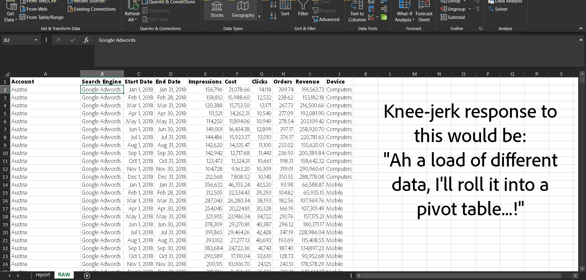 To make this post more meaningful, I’ve included quite a few screenshots so that you can (literally) visualize what we’re talking about. If you’re new to data, Excel, or both: it would help if you sat on your screen and replicated the steps outlined to get a more hands-on feeling for it. (again, quite literally).