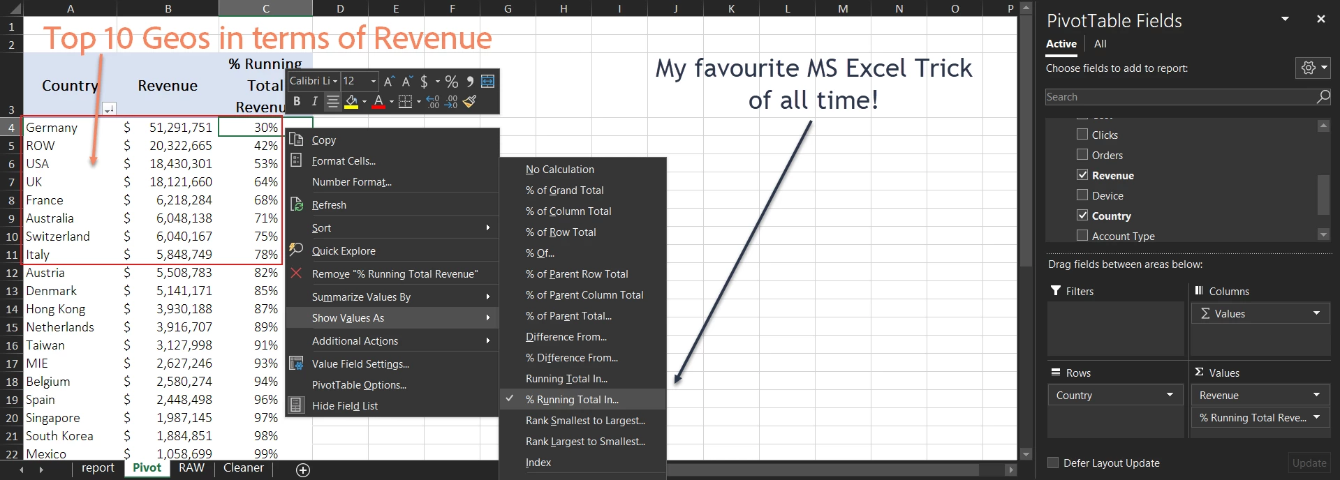 LIM Countries by Revenue – Now that our data is sliced nicely, it’s just a few steps before we have our top revenue Countries lined up