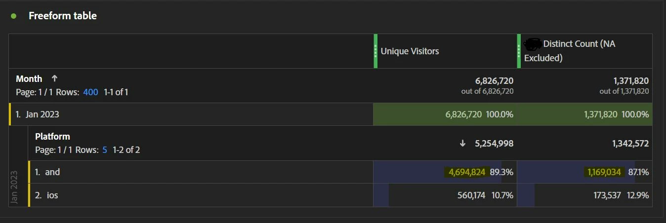 Thanks @jennifer_dungan , but if you see screenshot above (for 1st row of each device type breakdown), for e.g "Oppo A55" we are seeing 61 UV against 1 Customer ID. In single month its hard to believe that much re-installations.