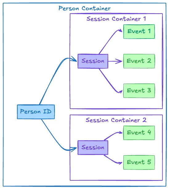 - Session Container boundaries determine how events are grouped into meaningful interaction sequences