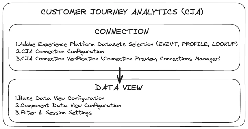Adobe Customer Journey Analytics (CJA) is a solution that allows for the analysis of customer journeys across multiple channels using unified datasets. It provides valuable insights by offering an understanding of customer intent signals, preferences over time, and event-based behaviors. By connecting well-architected Adobe Experience Platform (AEP) data sources to CJA via Connections, you can fully leverage its capabilities.