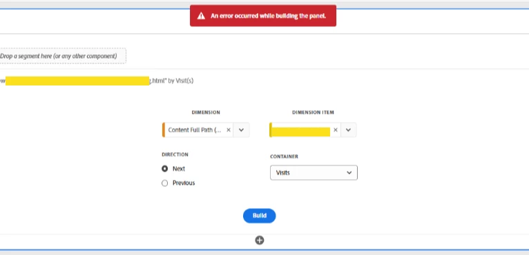 Is anyone else experiencing issues with the Next or Previous Item panel in AA and CJA? We’re able to drag and drop the panel and select dimensions and dimension items as usual, but when we try to build the panel, we receive an error message. This issue seems to be occurring across multiple users on our end.