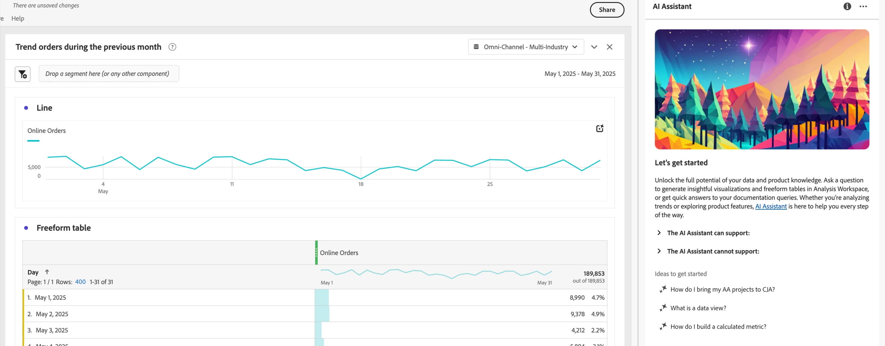 The Adobe Data Insights Agent is an AI-powered assistant that enhances Customer Journey Analytics (CJA) workflows by working alongside your team. Within Analysis Workspace, this new interface boosts the efficiency and productivity of your analysis processes. Building on your existing CJA analysis techniques and expertise, it streamlines tasks while surfacing valuable insights. This blog post explores how the assistant enhances your CJA practices, accelerates daily workflows, and helps your team extract more value from customer data while preserving your established analysis methods and domain expertise.
