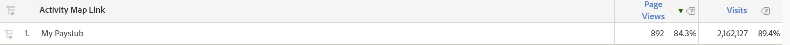 I want to check how many time "My Paystub" section on the page have been launched. I used Activity Map link report to check the same but i see that the page views is way to ;ess than the visits . Ideally i understand that page views are higher than visits . Can someone suggest what can i do ?