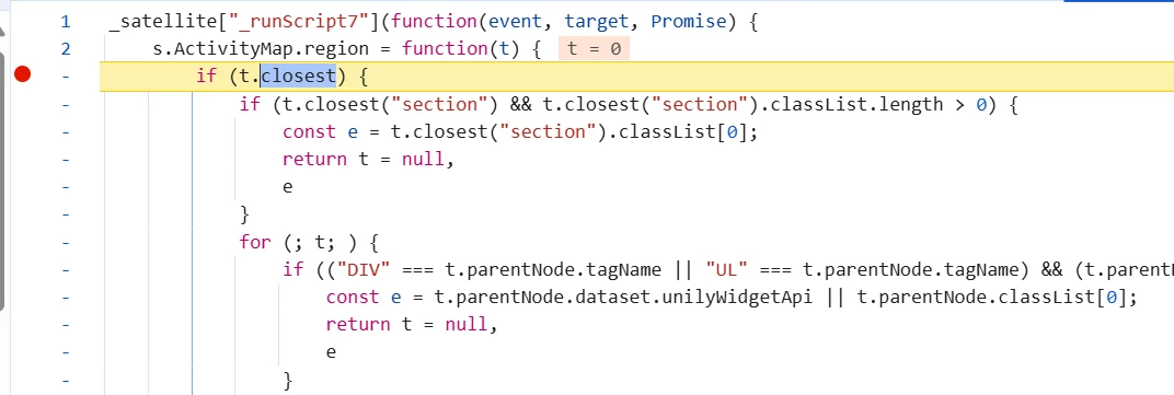 I found the above code example from ActivityMap.region | Adobe Analytics and it works as expected for most of the links on our website. However, for some links/buttons, the value of clickedElement appears to be 0 instead of the actual HTML DOM element object.