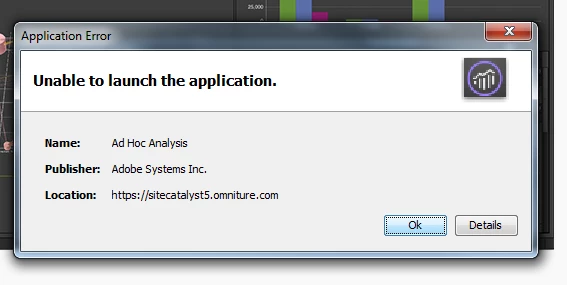 Is this happening to anyone else? When anyone at my company goes to launch ad hoc the app won't open, but instead gives us this pop up after it loads. It's been happening for a few days and across multiple browsers/computers
