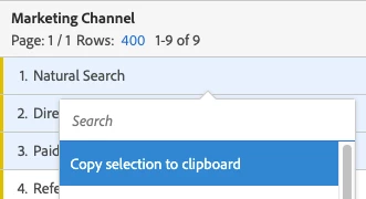 Add Copy selection to clipboard without metrics | Analysis Workspace