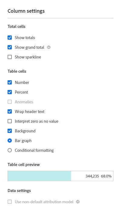 I'm seeking wider configurability to be able to adjust the default settings for really all of these below (reachable via gearwheel on a freeform table column header):