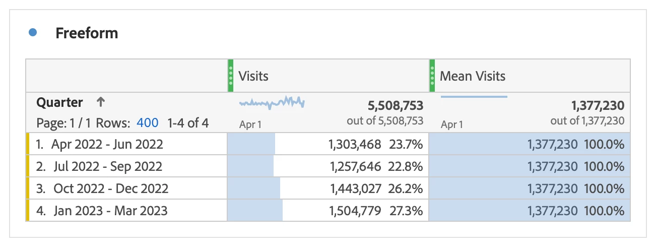 What is the best function to create a monthly average visits. I would like to create to compare against 2022's monthly averages. But hopefully have a metric that can shift depending on the timeframe dimension I drop down so it is not only stuck to 2022.
