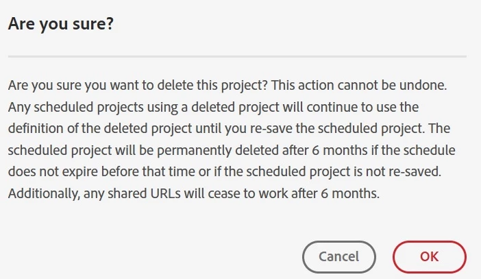 Adobe Analytics doesn't support restoring deleted proejcts