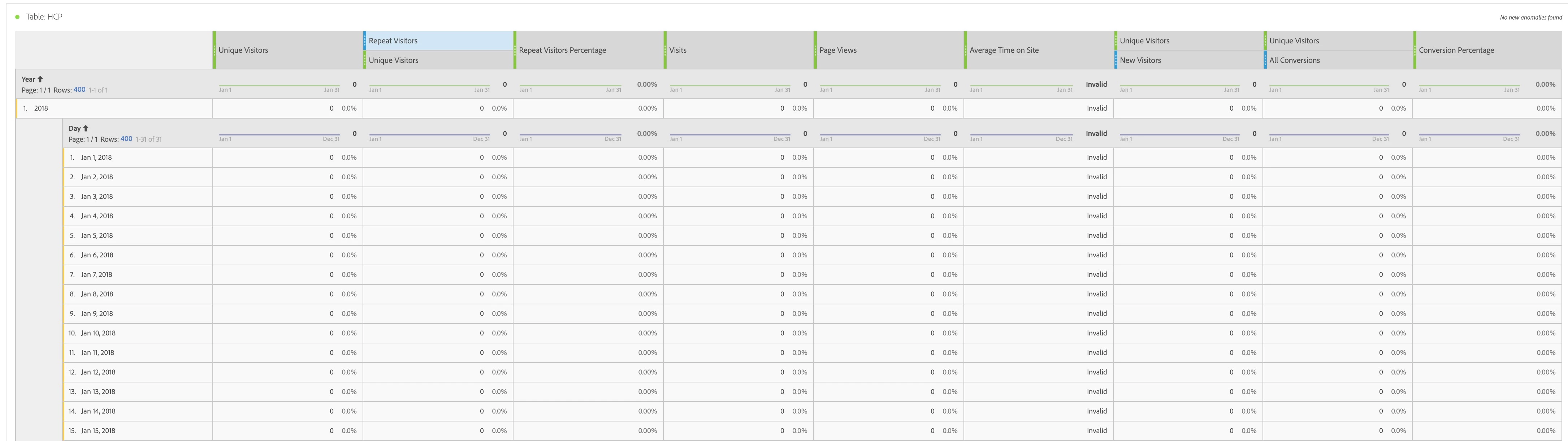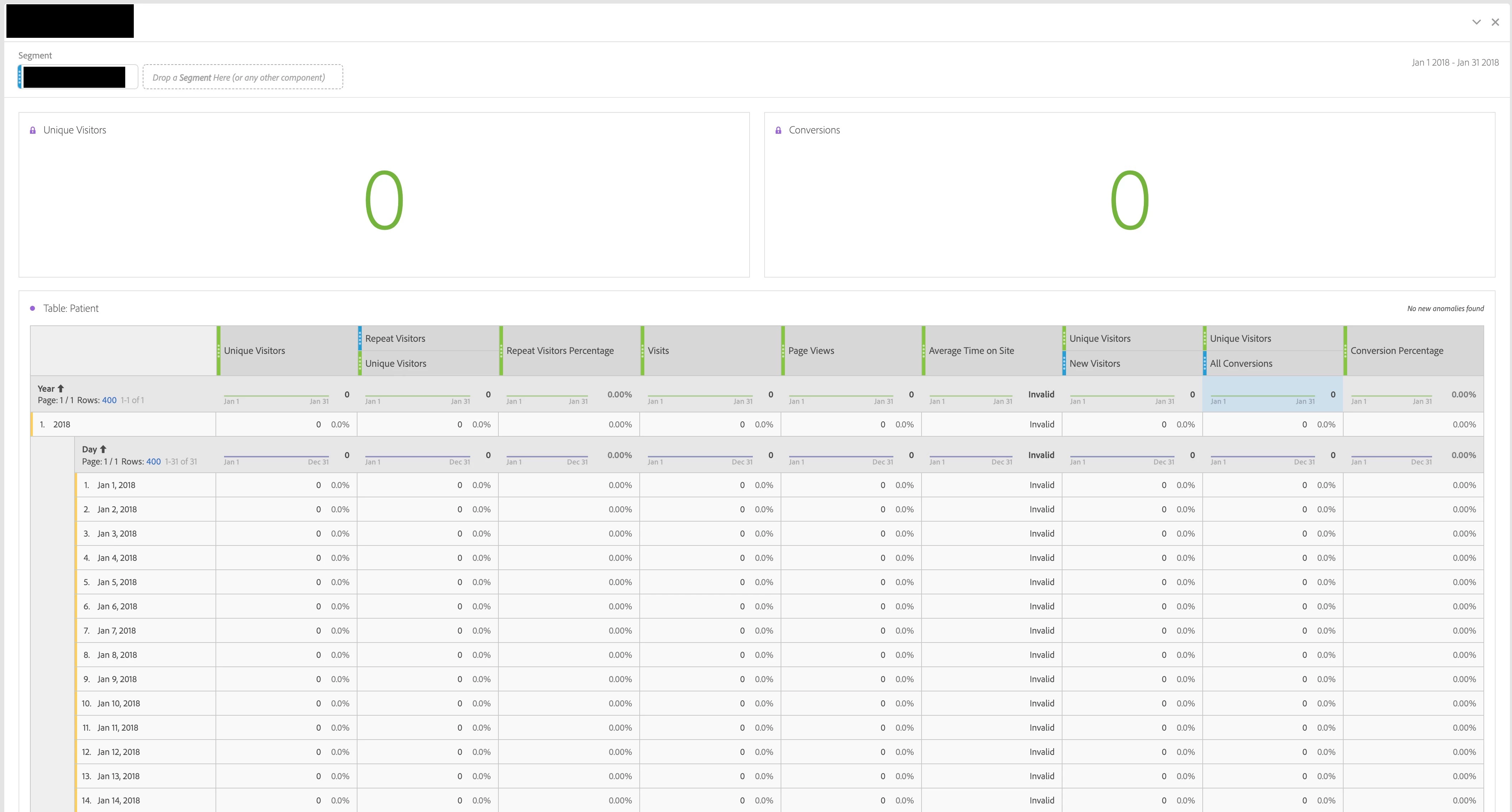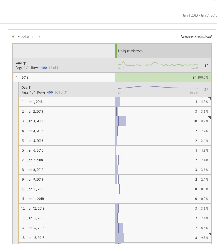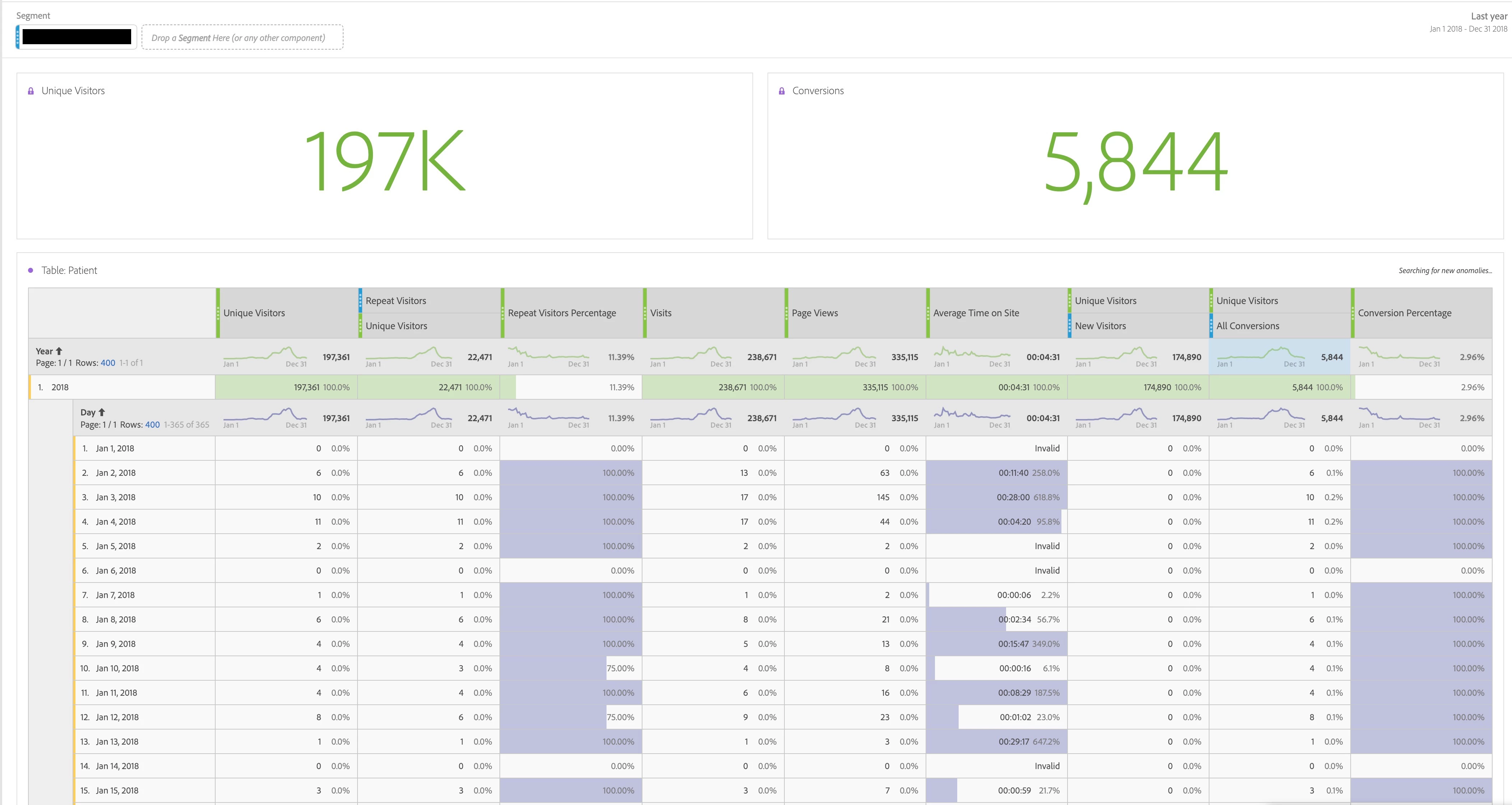 I'm looking at a particular segment (two of them have the same problem actually) - When looking at Unique visitors (although this happens with ALL other metrics too, I'm just using UV as it's easier to explain) and select This year, or Last year of data, I get "correct" data or at least some data: