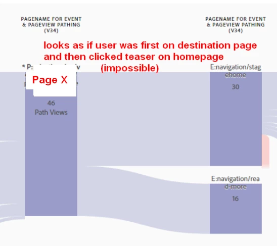 When we look at a subset of the users who clicked the teaser, we see that some of them appear to first have viewed the destination page and THEN clicked on the teaser that leads to that destination page.