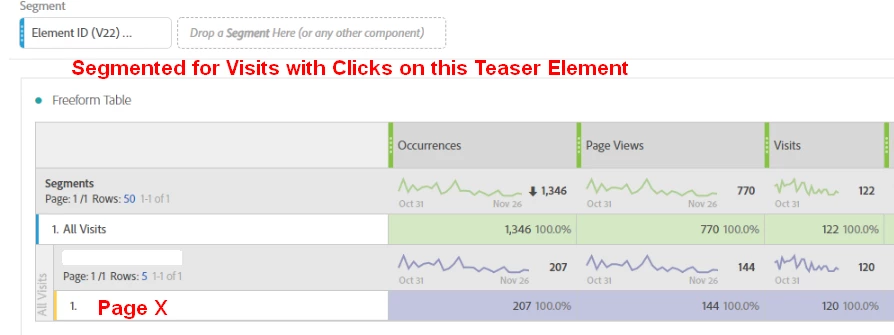 We want to create a fallout report where a user clicked on a tracked Teaser Link on the Homepage that leads to the Page X.