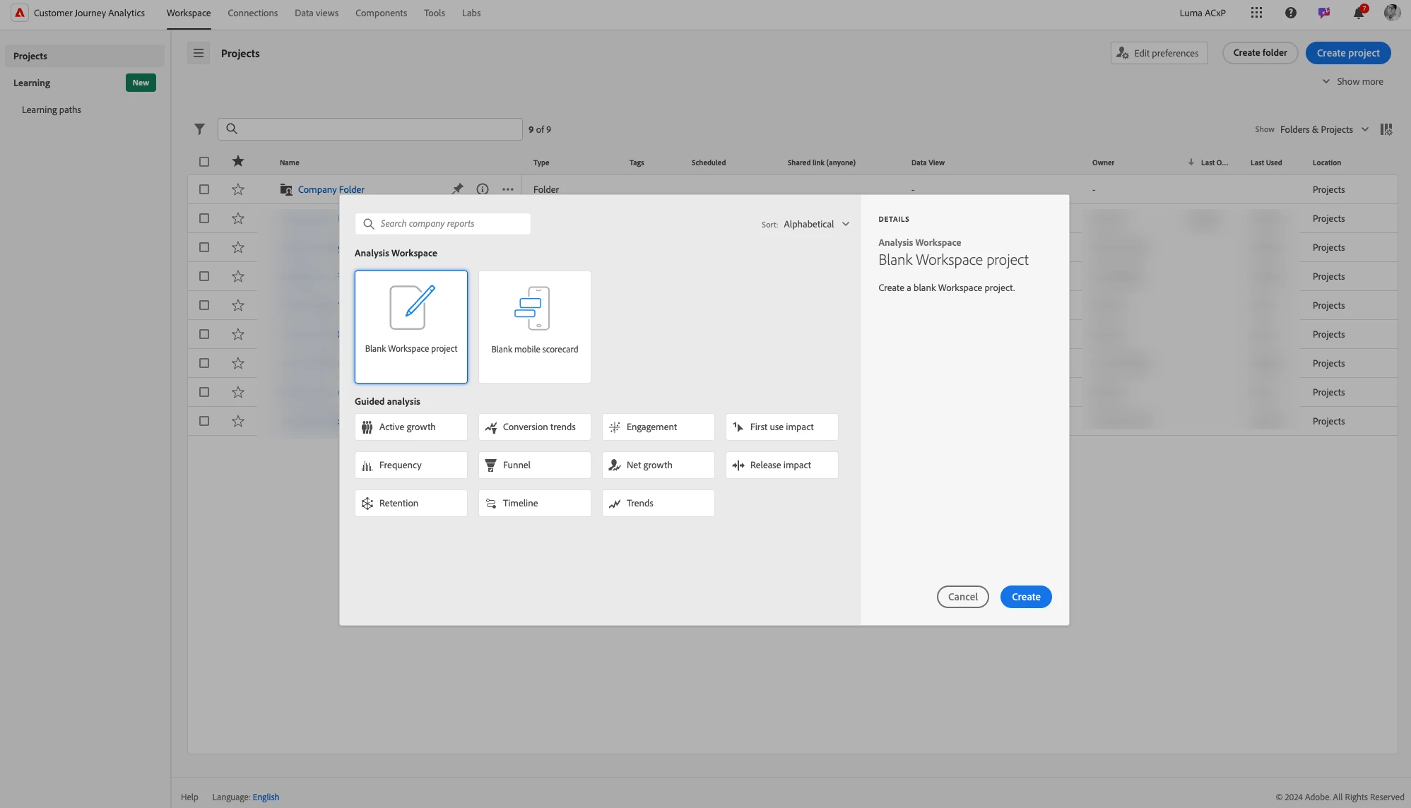 - The Guide to Projects and Analysis Workspace in Customer Journey Analytics, offering an in-depth look at creating and managing projects within the CJA environment.