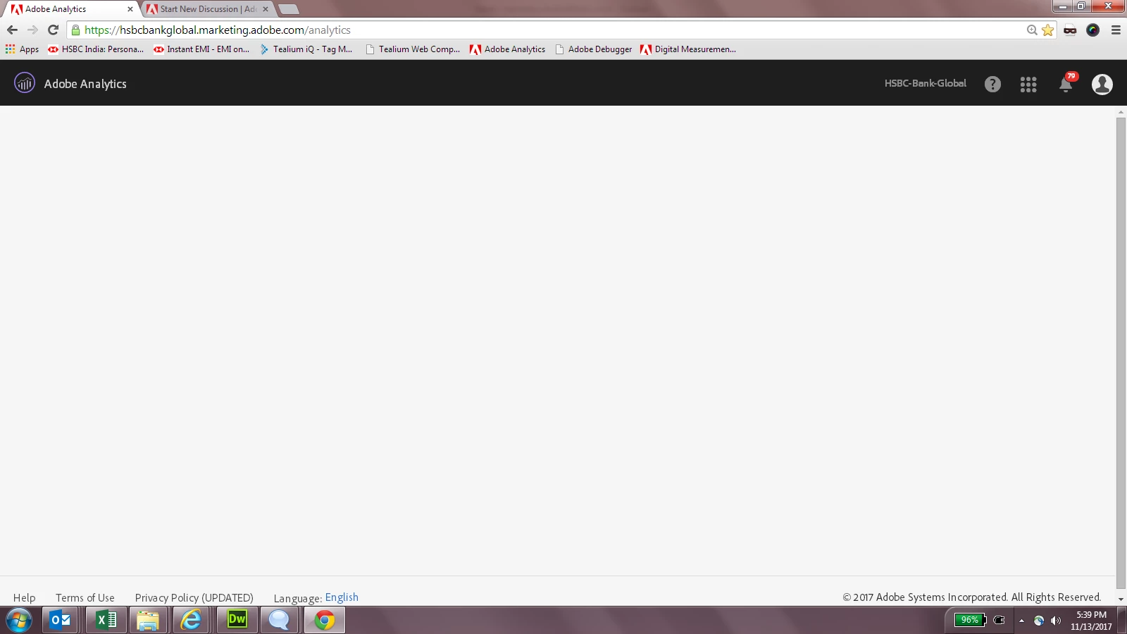 I am trying to loginto Adobe but always a blank page opens after logging in. No statics nothing noting open