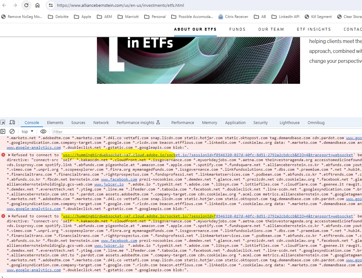 AEM team has published Content-Security-Policy header change. they have enabled the domain *.adobe.io . because of this change we are getting the below error on console.
