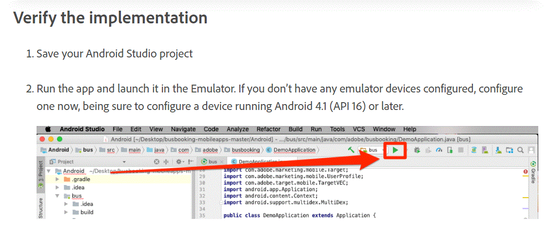 I am just trying to achieve the same steps as per the below given document. Create a bus booking android app and doing the implementation for the same. I could able to get through some of the steps but I got struck between run and verifying the implementation.
