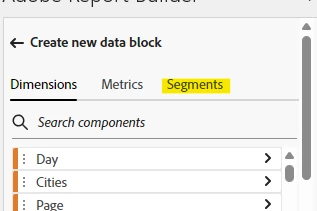 This does make report builder a little more complex than Workspace. Basically each Data Block is a separate API call, and segments are applied to the whole, not just the column.