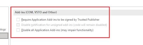 Anyone faced similar situation sharing screenshot of addin section and excel options.
