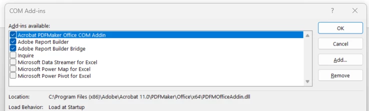 Adobe report builder is not working in excel, I reintalled the same but not able to to see the option and the addin addition is not working,