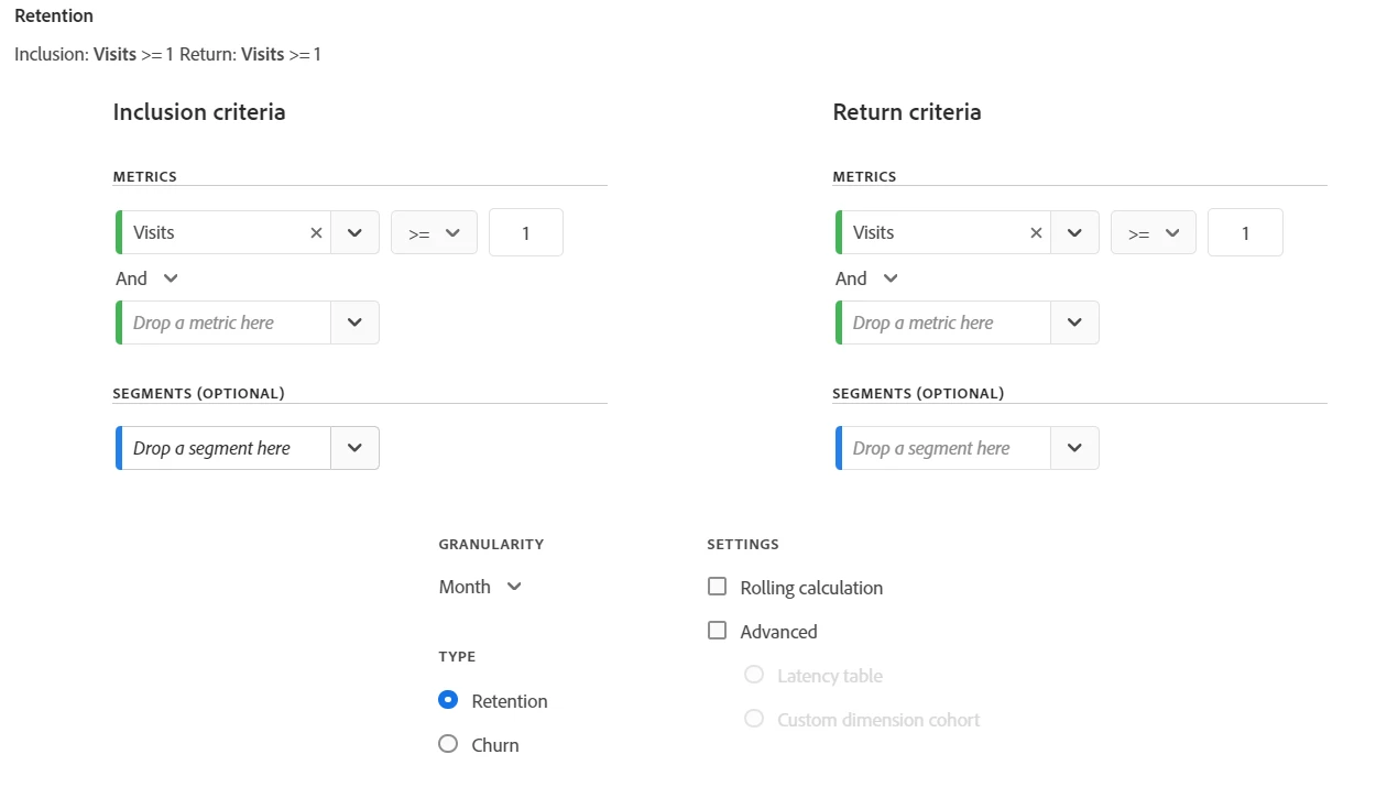 If I am using Rolling Calculation, then the visitor must maintain retention in each month to stay included.. so if they didn't visit in July, but came back in Aug, they still won't be included... Only visitors who come every month will make it to the end of the cohort, everyone else will lose the retention.