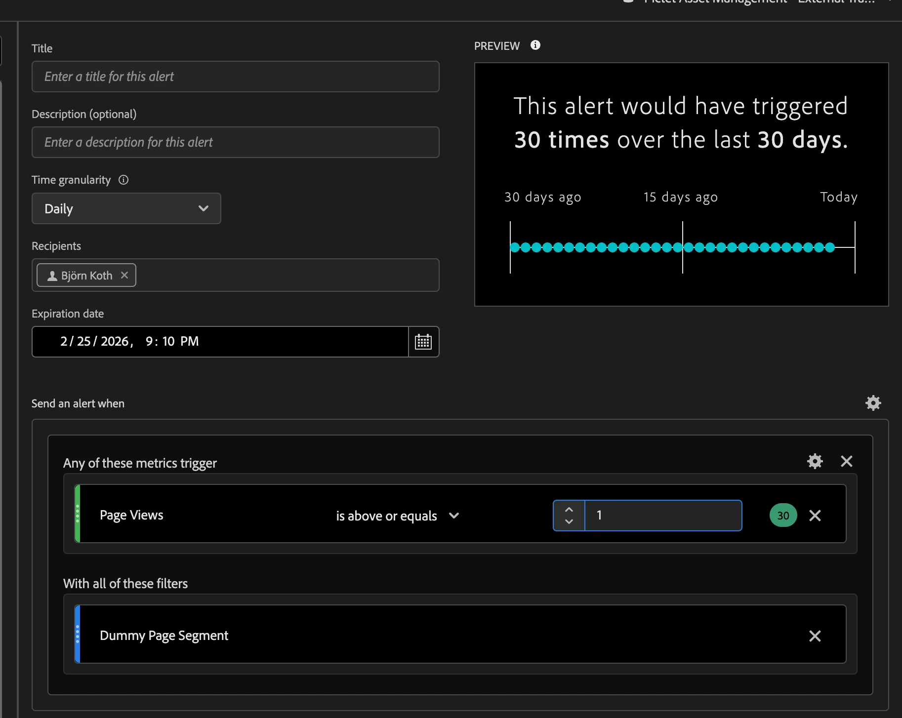 I'm looking to create an alert that contains a particular piece of a URL string (since the exact URL is unique per user), but it seems like you can only do equals the full URL.