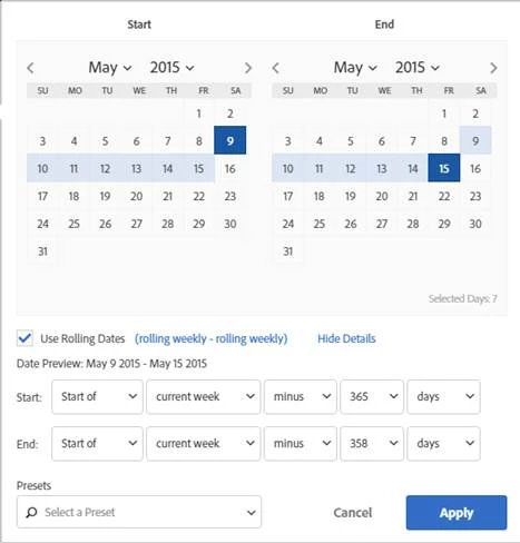 We do have a challenging question that requires an update to the UI - the team are looking to build a time comparison (last week vs. 52 weeks ago), but need it to encompass a different reporting week than our default in Adobe Analytics.