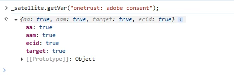 "Previous Permission" uses a "onetrust: adobe consent" data element which returns either true/false for below objects based on our CMS OneTrust active consent groups on the page: