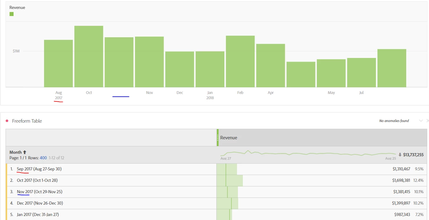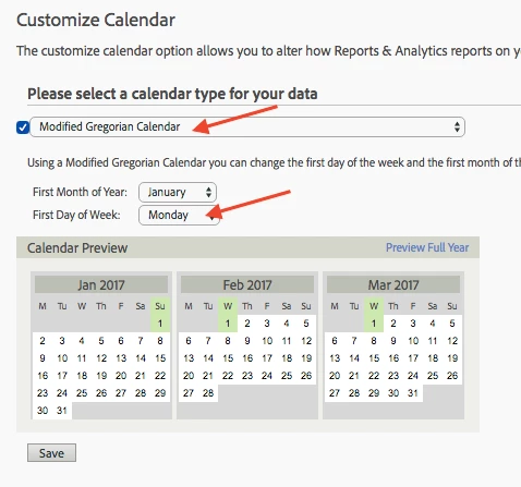 But in Analysis Workspace, the Time ranges still use Sunday as the first day of the week. It seems that Analysis Workspace then doesn't use the Customize Calendar setting.