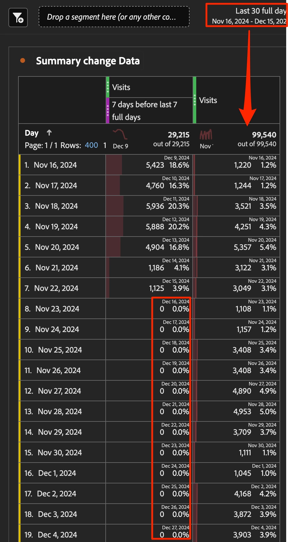 - Now, someone decides to change the date range on the panel to "last 30 full days"