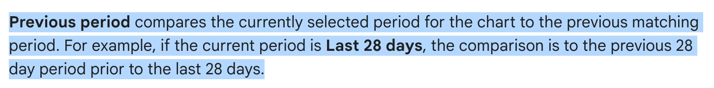 - The "Previous Period" date range automatically calculates the previous x days / weeks / months before the currently selected date range, based upon that value.