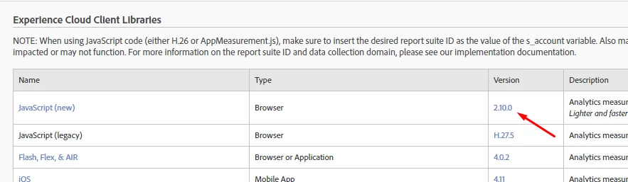Analytics AppMeasurement 2.10 (JavaScript) release date?