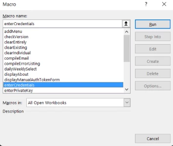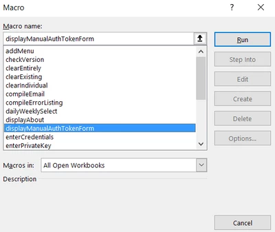 I do the macros for entering the credentials (org ID, client ID, client secret). Then the macro for the OAuth token, which I generate using this playground
