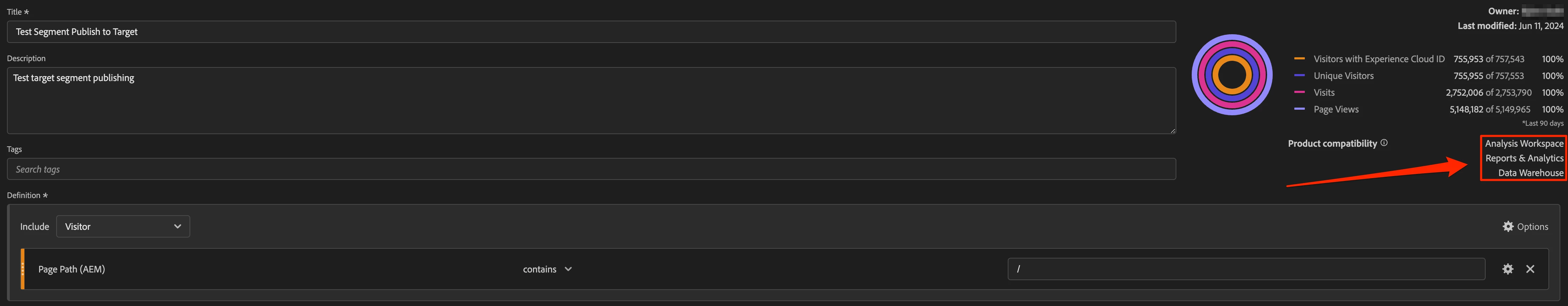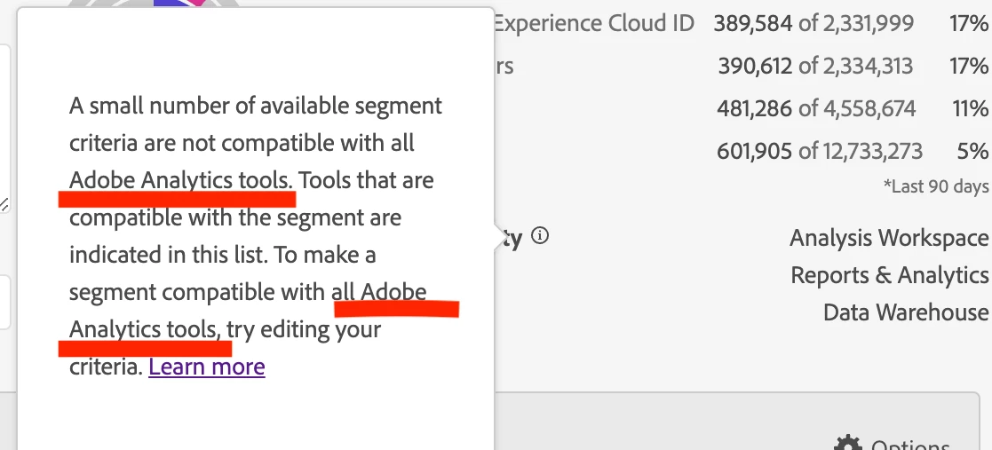 Analytics Segment not compatible with Target