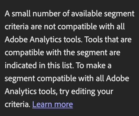 This segment should be based upon a traffic variable / prop. Now, when I create it, the segment builder tells me that it is incompatible.