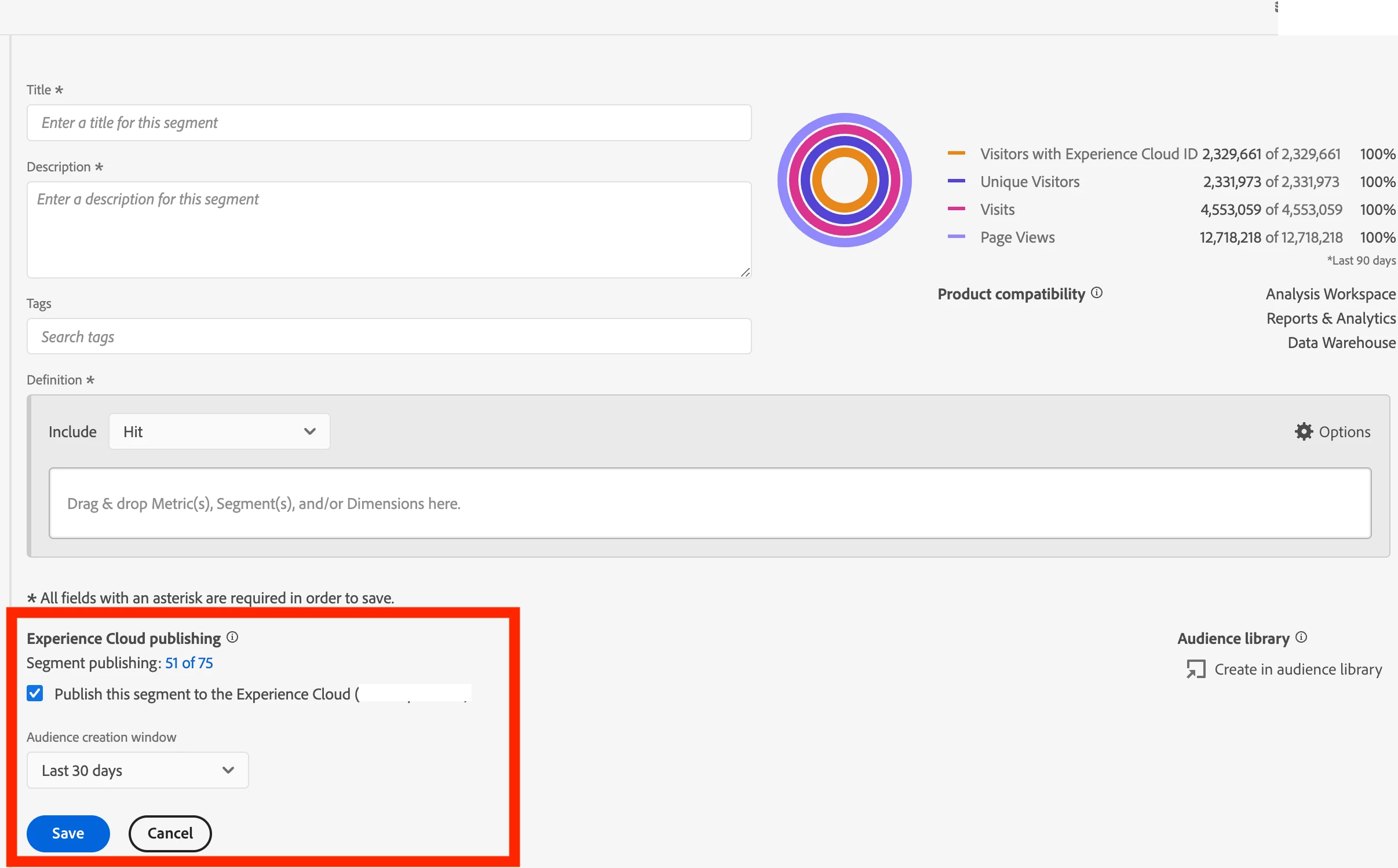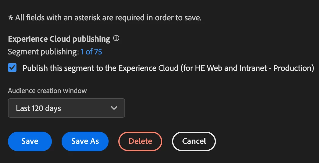 I am trying to create a publish a segment to the experience cloud, so that it can be used from Target.