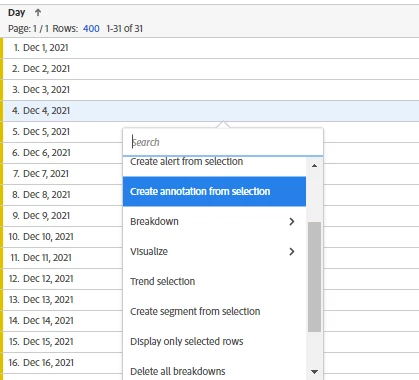 Annotation in Adobe Analytics - where can I see the annotation I made?