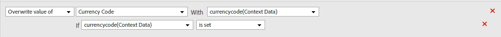 - Create a processing rule in the Adobe Analytics admin console for the report suite. Set the rule to overwrite the Currency Code variable.