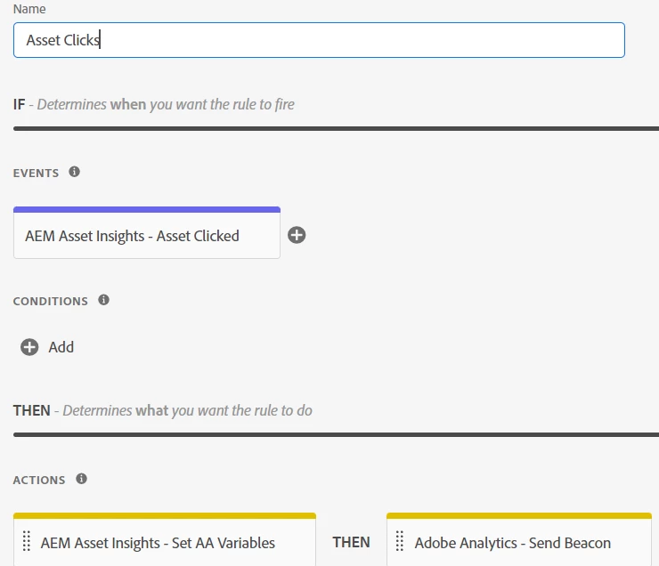 Hi, I am enabling the asset insights tracker for an AEM page. I have created 3 rules for this: