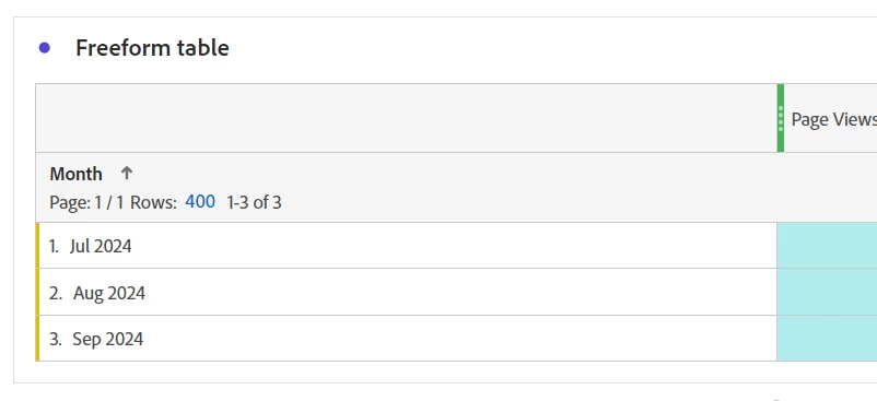 So to get around that, I would actually build my table by extending the panel temporarily all the way back to Jan 2021 (which I don't even have data that old); but that will give me 45 rows to work with (if I were using something as the initial dimension breakdown that could have more rows, I will extend the date to try and get the max 400 rows available in Workspace to show).