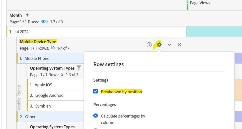 Now, I will go into the settings on the Month dimension in the table, and change it to "breakdown by position"