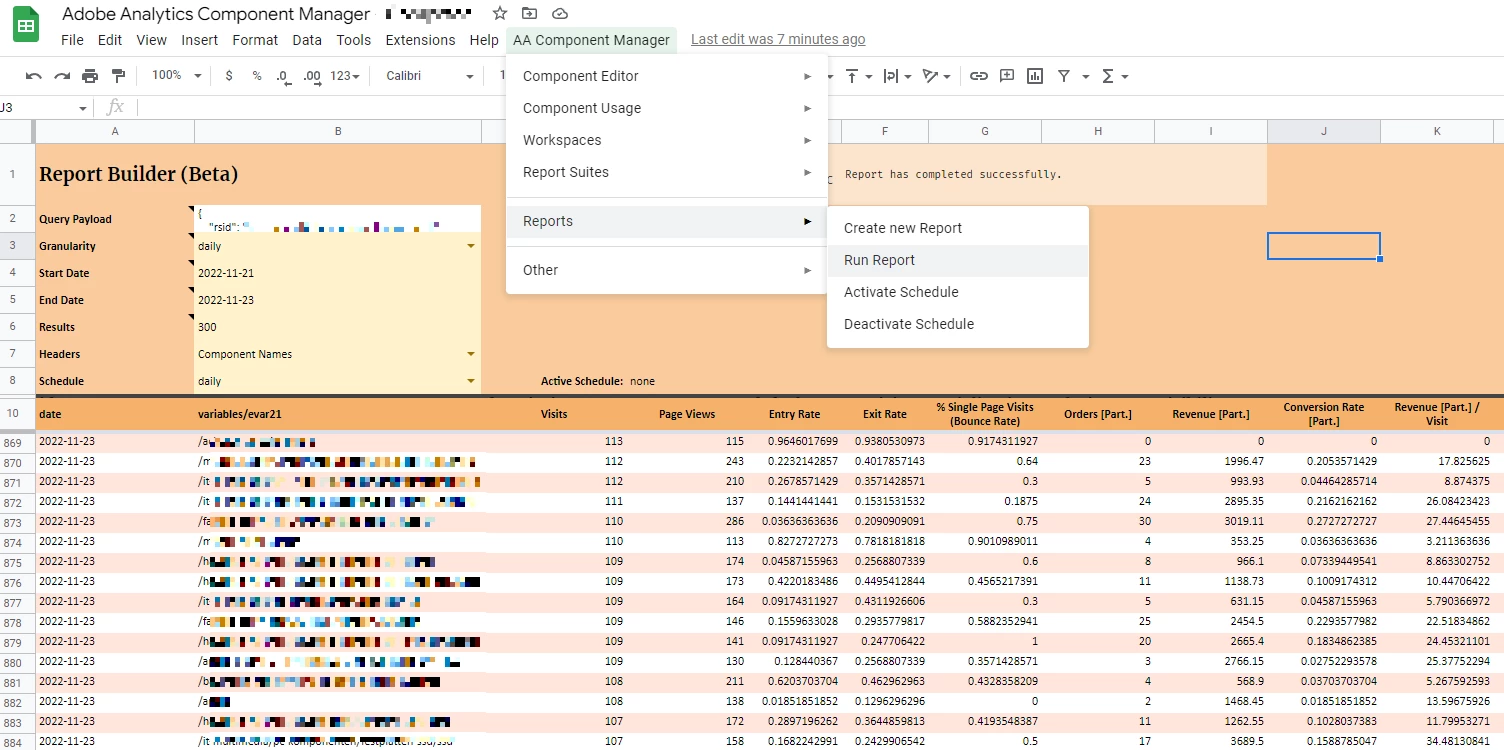 Automate pulling data from Adobe Analytics to Google Sheet for reporting