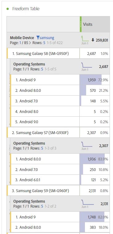 Q: When 'Samsung Galaxy S10' overtakes other Mobile Devices, could it automatically show Operating Systems in an automated report?
