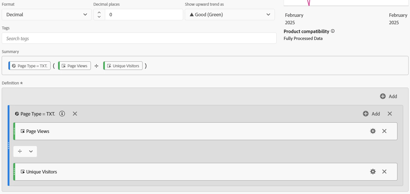 There is a page type on my site called "TXT." I want to build a metric that calculates the average number of pages a TXT visitor visits.