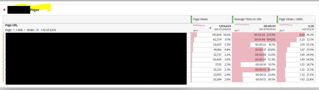 There are around 90 pages and when we average the time on sheet for Avg Time on Site or Page Views/Visit it does not match