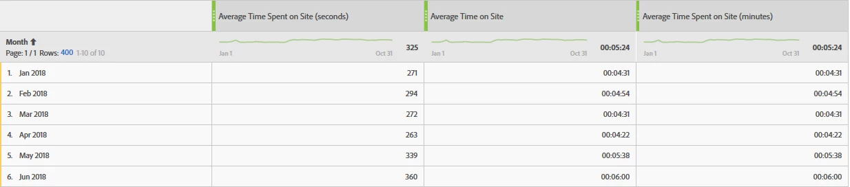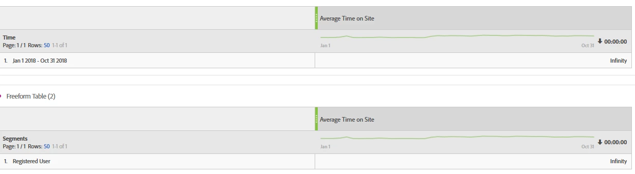 If I just want to see an overall view of avg.time spent on site, I see 'infinity' but if I break it down by months or some other dimension then I can the values being populated. However, it's also not the case, when we apply segment. Let me share with few screengrabs.