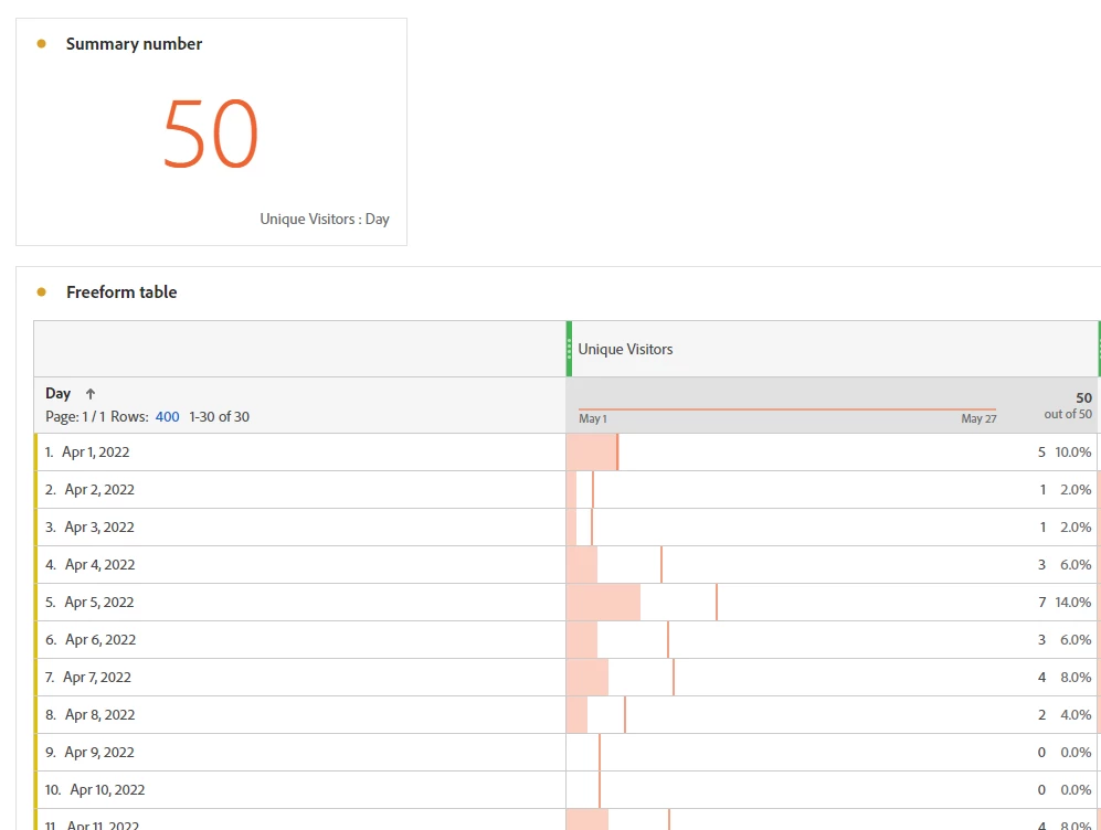 Here we are getting total unique visitors as 50 but adding all the rows the real total is 82.