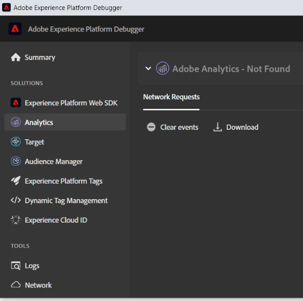 1st step - "Before Accepting Cookies": We entered the website and did not accept the cookies. The Debugger also do not find a report suite.