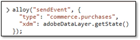 alloy("sentEvent",{"type":"commerce.purchases","xdm":adobeDataLayer.getState()});